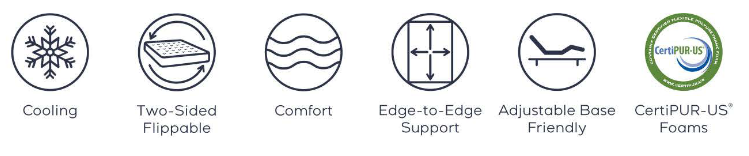 Design: PCM cool fabric with 1¾" plush poly foam, 1" HD support foam, and 8" elite pocket coil unit in a two-sided flippable construction